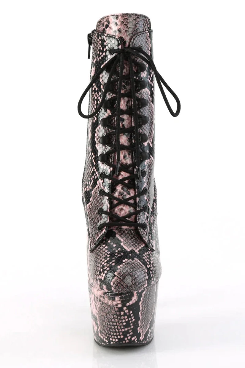 - Snake Skin Platform, Lace-Up Front Ankle Boot