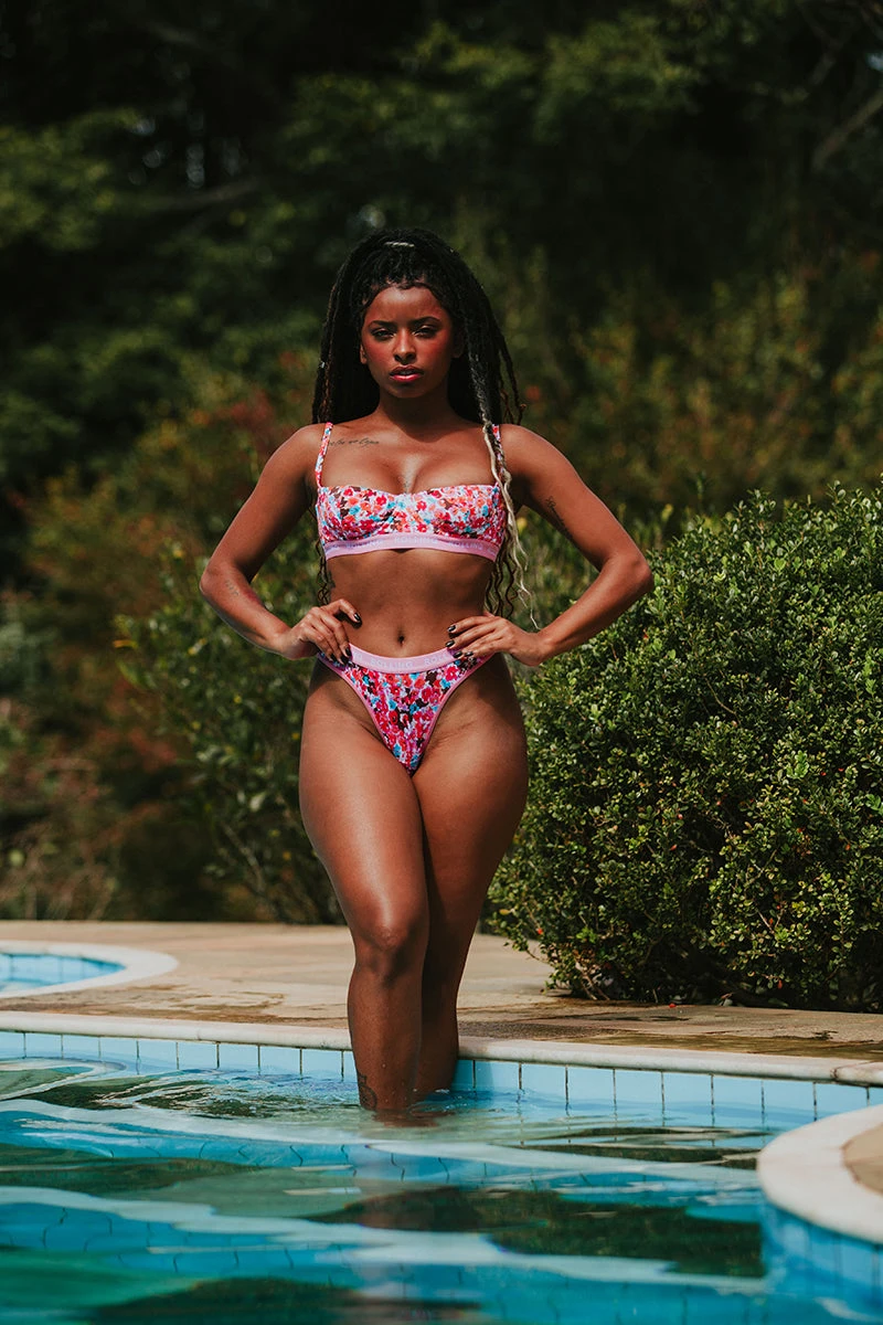 Rolling’s Balconette Top is a playful take on a classic style. Featuring structured cups and an adjustable bra style closing at the back.