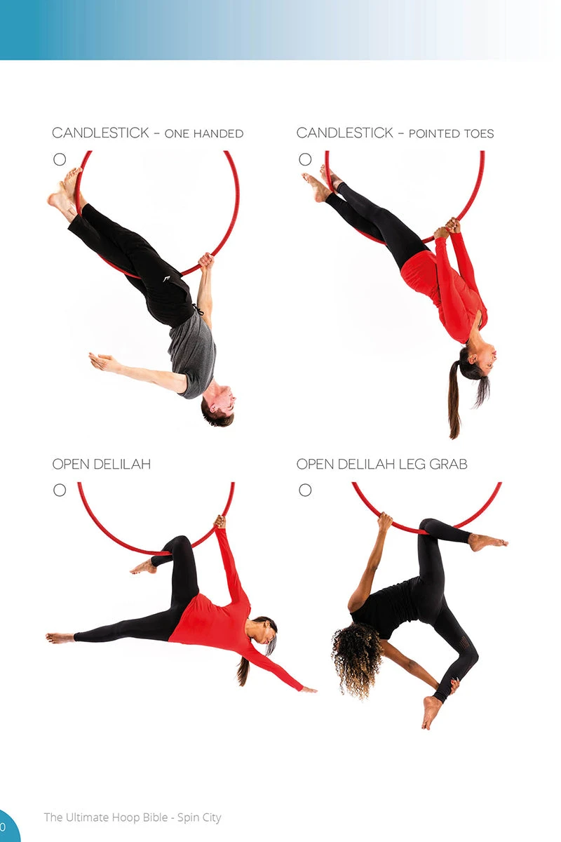 The 6th Edition Spin City Hoop Bible is a great reference book for aerial hoop enthusiasts worldwide. This book has been produced to help you identify your Candlestick from your Cradle, your Side Star from your Wineglass and so much more – with over 1800 reference photos. The first three chapters comprise the core Spin City syllabus (taught in their instructor training courses) with a colour-coded key to identify the level of all other moves. The 6th edition also includes a handy tick spot, so you can check off each move as you achieve it!
